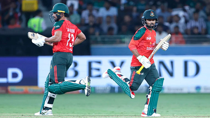 জবাব দিতে নেমে প্রথম ওভারের পঞ্চম বলে তানজিদ হাসানকে হারায় বাংলাদেশ। ২ বল খেলে শূন্য হাতে ফিরেন তিনি। এরপর অধিনায়ক লিটন দাসের সাথে ৩৪ বলে ৫৯ রানের জুটি গড়েন আরেক ওপেনার সাইফ। ৩টি চারে ১৬ বলে ২৩ রানে থামেন লিটন। এই ইনিংস খেলার পথে সাকিব আল হাসানকে টপকে টি-টোয়েন্টিতে বাংলাদেশের পক্ষে সর্বোচ্চ রানের মালিক হন তিনি।