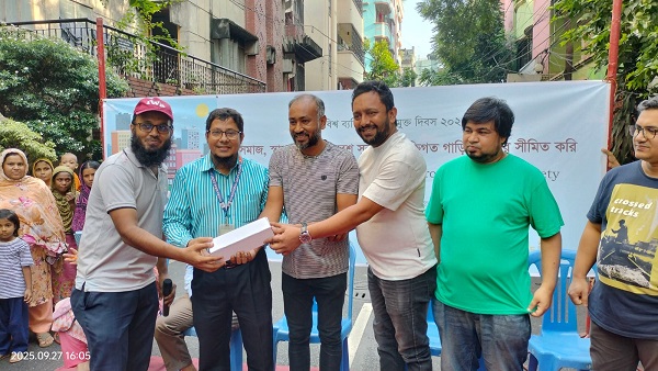 আজ ২৭ সেপ্টেম্বর ২০২৫, বিকাল ০৩:০০ ঘটিকায় ইনস্টিটিউট অব ওয়েলবীইং বাংলাদেশ ও ওয়ার্ক ফর এ বেটার বাংলাদেশ ট্রাস্ট এর যৌথ উদ্যোগে মোহাম্মদপুরের মোহাম্মদী হাউজিং সোসাইটির ০৪ নং সড়কে “সমাজ, স্বাস্থ্য এবং পরিবেশ সুরক্ষায় ব্যক্তিগত গাড়ির ব্যবহার সীমিত করি” শীর্ষক আলোচনা সভায় বক্তারা এ অভিমত ব্যক্ত করেন। আলোচনা সভার পাশাপাশি প্রতিবারের ন্যায় এবারও ব্যক্তিগত গাড়িমুক্ত দিবস উপলক্ষ্যে বিভিন্ন ধরনের দেশীয় খেলার প্রতিযোগিতা, কুইজ প্রতিযোগিতা, চিত্রাঙ্কন প্রতিযোগিতা এবং সাংস্কৃতিক আয়োজন করা হয়।