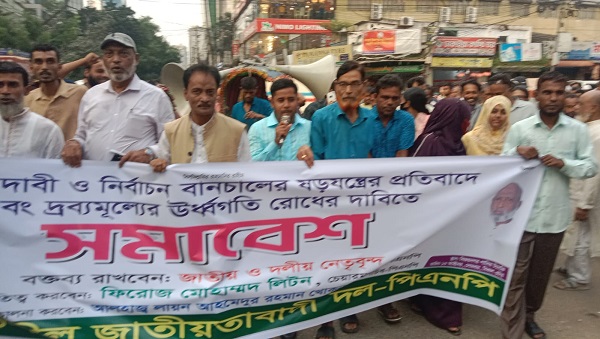 নিজস্ব প্রতিনিধি :ঢাকা: ৭ দফা দাবি আদায়, নির্বাচন বানচালের ষড়যন্ত্রের প্রতিবাদ এবং দ্রব্যমূল্যের লাগামহীন ঊর্ধ্বগতি নিয়ন্ত্রণের দাবিতে সমাবেশ করেছে প্রগতিশীল জাতীয়তাবাদী দল-পিএনপি।