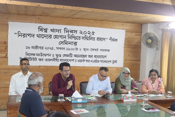 নিজস্ব প্রতিনিধি :জাতিসংঘের খাদ্য ও কৃষি সংস্থার তথ্যানুসারে বাংলাদেশে বর্তমানে প্রায় ৭ কোটি ৭১ লাখ মানুষ স্বাস্থ্যসম্মত ও নিরাপদ খাবার থেকে বঞ্চিত এবং ২০২৩ সালে প্রায় ১ কোটি ১৯ লাখ মানুষ তীব্র খাদ্য নিরাপত্তাহীনতায় ছিল। এই চ্যালেঞ্জ মোকাবিলায় সরকারি-বেসরকারি সংগঠন, সুশীল সমাজ এবং আন্তর্জাতিক সংস্থাসমূহের সম্মিলিত প্রচেষ্টা প্রয়োজন। আজ ১৬ অক্টোবর ২০২৫ বিশ্ব খাদ্য দিবস উদযাপন উপলক্ষ্যে সকাল ১১.০০টায় বিসেফ ফাউন্ডেশন, ফুড সেফটি অ্যালায়েন্স অব বাংলাদেশ, ইনস্টিটিউট অব ওয়েলবীইং বাংলাদেশ এবং ওয়ার্ক ফর এ বেটার বাংলাদেশ ট্রাস্ট এর সম্মিলিত উদ্যোগে সংস্থার কৈবর্ত সভাকক্ষে আয়োজিত ‘নিরাপদ খাদ্যের যোগান নিশ্চিতে সম্মিলিত প্রয়াস’ শীর্ষক সেমিনারে বক্তারা এ অভিমত ব্যক্ত করেন।