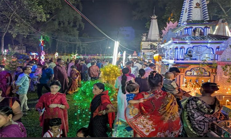 বিধান রায় নামে এক ব্যক্তি বলেন, ‘বাবার সমাধিতে মোমবাতি, আগরবাতি ও প্রদীপ জ্বালিয়ে তাকে স্মরণ করতে এসেছি। তিনি মিষ্টি খুব পছন্দ করতেন, তার সমাধিতে নানা ধরনের মিষ্টি সাজিয়ে উৎসর্গ করেছি। শ্মশান এলাকায় অনেককে কীর্তন করতে দেখা গেছে। কেউবা অশ্রুসজল চোখে স্মরণ করেন হারানো প্রিয় মানুষটিকে। সন্ধ্যায় অল্প সংখ্যক লোকজন থাকলেও রাত বাড়ার সাথে সাথে সুগন্ধা নদীর তীরে পৌর শ্মশানঘাটে হিন্দু ধর্মালম্বীদের সমাগম বাড়তে থাকে।