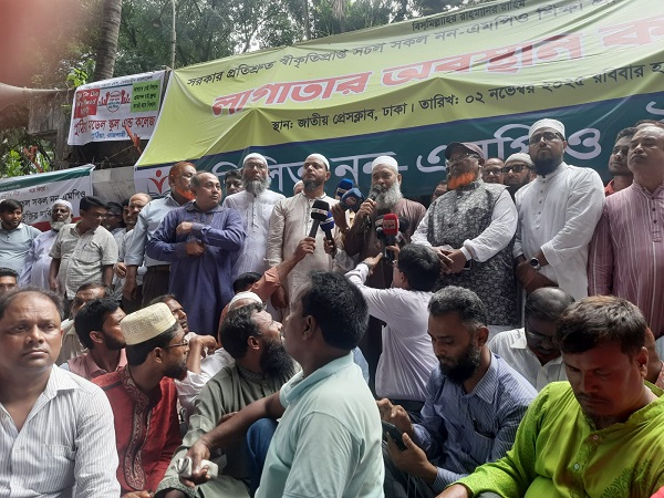 সভাপতি সাহেবের লাগাতার অবস্থান কর্মসূচীতে প্রধান সমন্বয়ক প্রিন্সিপাল মোঃ সেলিম মিয়ার প্রারম্ভিক বক্তব্যের মাধ্যমে ২য় দিনের কর্মসূচীর সুচনা হয়। আজকের দ্বিতীয় দিনের কর্মসূচীতে প্রধান অতিথি হিসেবে উপস্থিত ছিলেন অধ্যাপক মোঃ মুজিবুর রহমান, সিনিয়র নায়েবে আমীর, বিশেষ অতিথি হিসেবে বক্তব্য রাখেন ড. মোঃ শফিকুল ইসলাম মাসুদ, সেক্রেটারী, ঢাকা মহানগর দক্ষিণ, বাংলাদেশ জামায়াতে ইসলামী ও বাংলাদেশ আদর্শ শিক্ষক ফেডারেশনের কেন্দ্রীয় নেতৃবৃন্দ। প্রধান অতিথি অধ্যাপক মুজিবুর রহমান তার বক্তব্যে বলেন, বিগত পবিত্র রমজান মাসে এই নন এমপিও শিক্ষকগণ এমপিও’র দাবীতে জাতীয় প্রেসক্লাবে ১৭ দিনের লাগাতার অবস্থান কর্মসূচী পালন করেন। তিনি ঐ সময় মাননীয় শিক্ষা উপদেষ্টা ও শিক্ষা সচিব মহোদয়ের সাথে এমপিওভুক্তির সফল আলোচনার কথা উল্লেখ করেন। সেই সময় মাননীয় শিক্ষা উপদেষ্টা ও সচিব মহোদয় এমপিওভুক্তির দাবী মেনে নেন এবং এমপিওভুক্তির অঙ্গীকার প্রদান করেন। ফলে আন্দোলনরত নন এমপিও শিক্ষকগণ সরকারের অঙ্গীকারে বিশ^াস করে নিজ নিজ শিক্ষা প্রতিষ্ঠানে ফিরে গিয়ে প্রতিষ্ঠানে যথারীতি দায়িত্ব পালন করেন। লাগাতার অবস্থান কর্মসূচীতে তিনি সরকারকে এমপিও নীতিমালা ও পরিপত্রের অসম খেলা বন্ধ করে আজই সকল নন এমপিও শিক্ষা প্রতিষ্ঠান এমপিওভুক্ত করণের জন্য সরকারকে উদ্ধাত্ত আহবান জানান। নচেৎ এ আন্দোলন থেকে কঠোর কর্মসূচী দিয়ে শিক্ষকরা তাদের এমপিওভুক্তির দাবী আদায় করে ছাড়বে ইনশাআল্লাহ। তিনি আরো বলেন আমরা তাদের দাবীর প্রতি সর্বাত্মক সমর্থন ও সহযোগিতা করতে অঙ্গীকারাবদ্ধ। বিশেষ অতিথির বক্তব্যে ড. শফিকুল ইসলাম মাসুদ বলেন নন এমপিও শিক্ষকদের দাবীটি ন্যায্য। এ প্রতিষ্ঠানগুলো বিগত বিএনপি জামায়াত আমলে প্রতিষ্ঠিত হওয়ায় বিগত ফ্যাসিস্ট সরকার রাজনৈতিক বৈষম্য করে এমপিও করে নাই। তিনি অন্তবর্তীকালীন সরকারকে অনতিবিলম্বে এই নন এমপিও শিক্ষা প্রতিষ্ঠানগুলোকে এমপিওভুক্ত করার আহ্বান জানান। অন্যথায় আন্দোলনরত শিক্ষকবৃন্দ আন্দোলন সংগ্রামের মাধ্যমে তাদের দাবী আদায় করবে এবং এই ন্যায্য দাবী বাস্তবায়নে শিক্ষকদের সাথে থাকার অঙ্গীকার করেন। বিশেষ অতিথি হিসেবে আরো বক্তব্য রাখেন, অধ্যক্ষ ড. ইকবাল হোসেন ভূইয়া, সেক্রেটারী শিক্ষা বিভাগ, বাংলাদেশ জামায়াতে ইসলামী, ড. এ বি এম ফজলুল করিম, জেনারেল সেক্রেটারী, বাংলাদেশ আদর্শ শিক্ষক ফেডারেশন। তারা এই নন এমপিও প্রতিষ্ঠানগুলোকে এমপিওভুক্তির জন্য সরকারকে আহ্বান জানান।