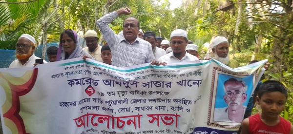 পটুয়াখালীর দশমিনায় মহান বিপ্লবী নেতা কমরেড আবদুস সাত্তার খানের ২৯তম মৃত্যুবার্ষিকী উপলক্ষে স্মরণসভা অনুষ্ঠিত