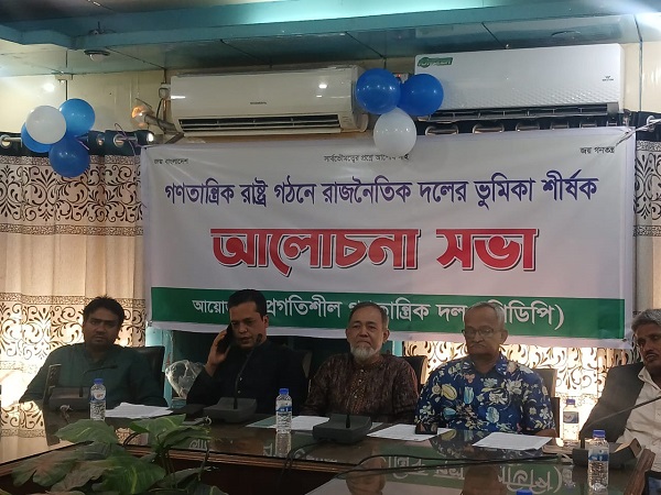 নিজস্ব প্রতিনিধি :আজ শনিবার ১৫/১১/২০২৫ইং সকাল এগারোটায় শিশু কল্যান পরিষদ, তোপখানা রোড, ঢাকায় গণতান্ত্রিক রাষ্ট্র গঠনে রাজনৈতিক দলের করনীয় শীর্ষক আলোচনা সভায় সভাপতিত্ব করেন প্রগতিশীল গজণতান্ত্রিক দল (পিডিপি)’র মহাসচিব হারুন আল রশিদ খান। অতিথি হিসাবে উপস্থিত ছিলেন বাংলাদেশের সাম্যবাদী দল (এমএল)’র সভাপতি বীর মুক্তিযোদ্ধা কমরেড হারুন চৌধুরী, সাধারণ সম্পাদক কমরেড খান মোঃ নুরে আলম, সমাজতান্ত্রিক মজদুর পার্টির সাধারণ সম্পাদক কমরেড ডাঃ সামছুল আলম, সোস্যাল ডেমোক্রেটিক পার্টির আহবায়ক আবুল কালাম আজাদ, প্রগতিশীল গণতান্ত্রিক দল (পিডিপি)’র ভাইস চেয়ারম্যান আবদুল বারী ভাইস চেয়ারম্যান মনিরুল ইসলাম, ভাইস চেয়ারম্যান নুরে আলম সিদ্দিকী, ভাইস চেয়ারম্যান আরব আলী, যুগ্ম মহাসচিব কাজি আদনান তাজিম তুষার সঞ্চালনা করেন যুগ্ম মহাসচিব মোঃ আমানতউল্লা আমান প্রমুখ।