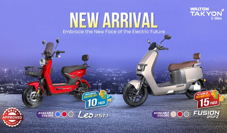 রুপসীবাংলা৭১ তথ্যপ্রযুক্তি ডেস্ক : দেশের ইলেকট্রিক বাইক বা ই-বাইক বাজারে নতুন মাত্রা যোগ করেছে ওয়ালটন। বাংলাদেশের প্রথম বিআরটিএ অনুমোদিত কোম্পানি ওয়ালটন তাদের ই-বাইক সিরিজ ‘তাকিওন’-এ যুক্ত করেছে দুটি নতুন মডেল। আধুনিক ডিজাইন, শক্তিশালী মোটর, দীর্ঘস্থায়ী ব্যাটারি ব্যাকআপ এবং ১০-১৫ পয়সা প্রতি কিলোমিটারে সাশ্রয়ী খরচে চলার কারণে নতুন এই ই-বাইকগুলোকে নগর ও গ্রামীণ জীবনের স্মার্ট ও পরিবেশবান্ধব সঙ্গী হিসেবে দেখা হচ্ছে।