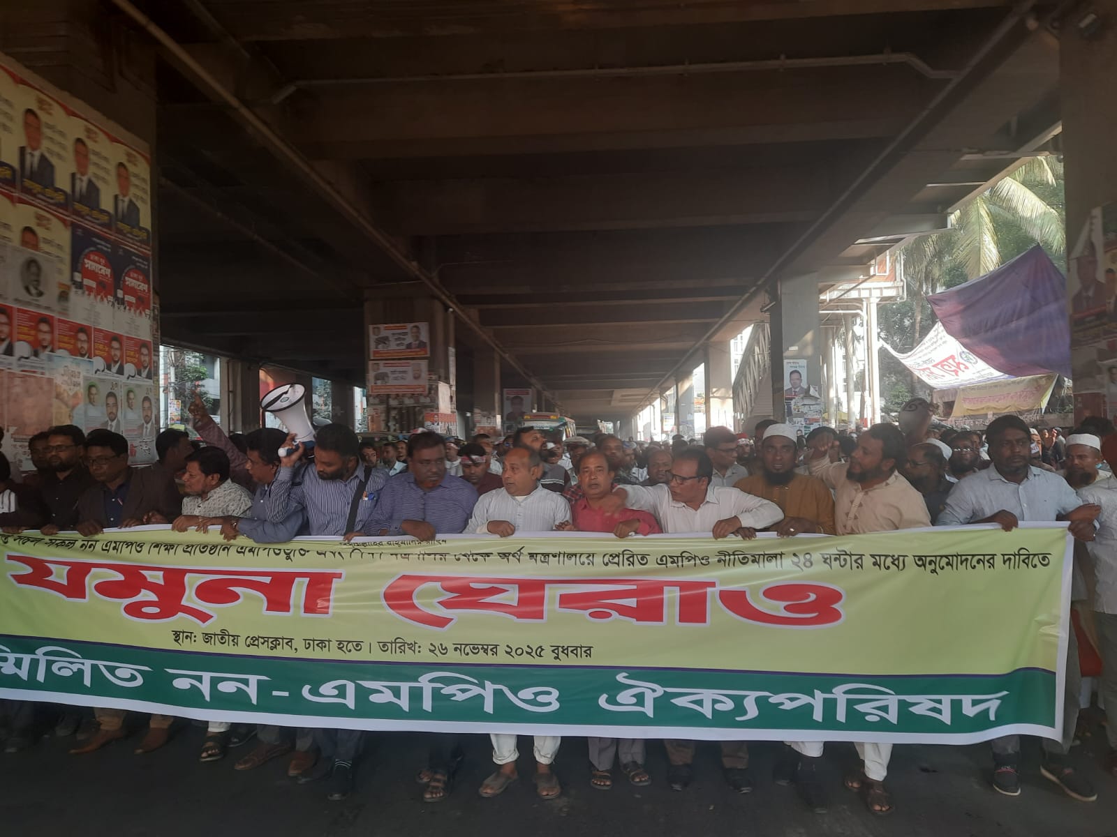 অদ্য ২৬ নভেম্বর, ২০২৫ (বুধবার) সকাল ১০:০০ টায় জাতীয় প্রেসক্লাবের সামনে ১১ মার্চ ২০২৫ খ্রি. তারিখে শিক্ষা মন্ত্রণালয়ের প্রতিশ্রুত সকল নন-এমপিও শিক্ষা প্রতিষ্ঠান এমপিওভুক্তির দাবীতে “সম্মিলিত নন এমপিও ঐক্য পরিষদ’’ এর উদ্যোগে ২৫তম দিনের মতো সারা দেশ থেকে আগত নন এমপিও শিক্ষকদের লাগাতার অবস্থান কর্মসূচি পালন করা হয়। উক্ত কর্মসূচীতে সভাপতিত্ব করেন সম্মিলিত নন এমপিও ঐক্য পরিষদের প্রধান সমন্বয়ক প্রিন্সিপাল মোঃ সেলিম মিয়া।
