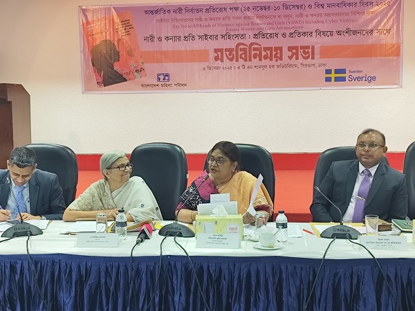 বক্তব্যে বাংলাদেশ মহিলা পরিষদের কেন্দ্রীয় কমিটির সাধারণ সম্পাদক মালেকা বানু বলেন, তথ্য প্রযুক্তির অবাধ তথ্য প্রবাহ আমাদের নানামুখী সুবিধা বৃদ্ধি করেছে, প্রবেশাধিকার দিয়েছে। তবে নারীর জন্য সুযোগ সীমিত করেছে। নারীর প্রতি সহিংসতাকে বৃদ্ধি করেছে যা বিশ^জুড়ে সকলের উদ্বেগের কারণ হয়ে দাড়িয়েছে। লিঙ্গভিত্তিক সহিংসতা নারীকে শারীরিক, মানসিক ভাবে বির্পযস্ত করে। ডিজিটাল সহিংসতা প্রতিরোধ ও প্রতিকার করতে সকলের সম্মিলিত সহযোগিতা প্রয়োজন। সাইবার অপরাধের শাস্তি নিশ্চিত করতে হবে।