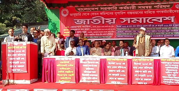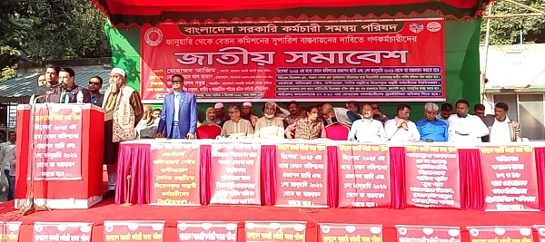 নিজস্ব প্রতিনিধিঃ দেশের বৃহত্তম গণকর্মচারী সংগঠন বাংলাদেশ সরকারি কর্মচারী সমন্বয় পরিষদের উদ্যোগে ১৫ আবদুল গণি রোড, সচিবালয় সড়ক, ঢাকায় সকাল ১০টায় জাতীয় সমাবেশ অনুষ্ঠিত হয়। সংগঠনের সভাপতি মোহাম্মদ আজিম এর সভাপতিত্বে এবং মহাসচিব বদরুল আলম সবুজের সঞ্চালনায় আয়োজিত সমাবেশে জাতীয় ও আন্তর্জাতিক পর্যায়ের শ্রমিক কর্মচারী নেতৃবৃন্দসহ প্রায় ১০ সহস্রাধিক গণকর্মচারী অংশগ্রহণ করেন। সমাবেশের শুরুতে সাবেক প্রধানমন্ত্রী দেশনেত্রী বেগম খালেদা জিয়ার আরোগ্য কামনায় বিশেষ মোনাজাত ও দোয়া মাহফিল অনুষ্ঠিত হয় ।