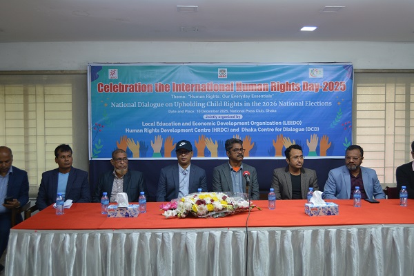নিজস্ব প্রতিনিধি : শিশু অধিকার সুরক্ষাসহ চারটি বিষয় নির্বাচনী ইশতেহারে অন্তর্ভুক্ত করার দাবি জানিয়েছে লোকাল এডুকেশন অ্যান্ড ইকোনমিক ডেভেলপমেন্ট অরগানাইজেশন (লিডো), হিউম্যান রাইটস ডেভেলপমেন্ট সেন্টার (এইচআরডিসি) ও ঢাকা সেন্টার ফর ডায়ালগ (ডিসিডি)। বুধবার জাতীয় প্রেসক্লাবের আকরাম খাঁ হলে আন্তর্জাতিক মানবাধিকার দিবস উপলক্ষে ‘২০২৬ সালের জাতীয় নির্বাচনী প্রক্রিয়ায় শিশু অধিকার সুরক্ষা’ শীর্ষক জাতীয় সংলাপে এ দাবি জানানো হয়।