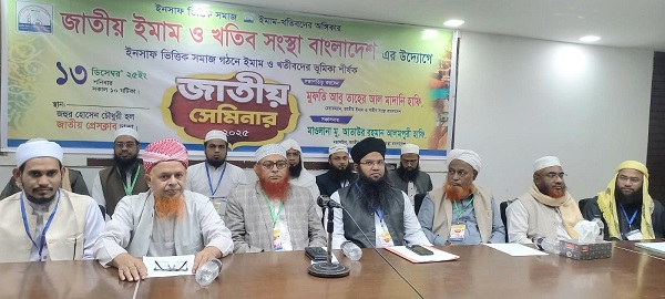 আজ শনিবার (১৩ ডিসেম্বর) সকাল ১০ ঘটিকায় রাজধানী ঢাকায় জাতীয় প্রেসক্লাবের জহুর হোসেন চৌধুরী হলে জাতীয় ইমাম ও খতীব সংস্থা বাংলাদেশ এর উদ্যোগে ইনসাফ ভিত্তিক সমাজ গঠনে ইমাম ও খতীবদের ভূমিকা শীর্ষক জাতীয় সেমিনারে সংগঠনের পক্ষ হতে এ দাবি উপস্থাপন করা হয়।