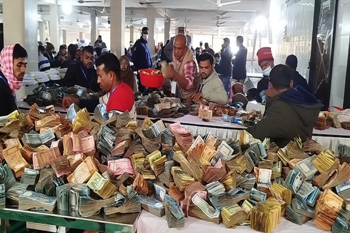 শনিবার (২৭ ডিসেম্বর) রাত সোয়াটার দিকে পাগলা মসজিদ পরিচালনা কমিটির সভাপতি ও জেলা প্রশাসক মোহাম্মদ আসলাম মোল্লা এ তথ্য নিশ্চিত করেছেন।এর আগে আজ শনিবার সকাল ৭টায় খোলা হয় মসজিদের ১৩টি লোহার দানবাক্স। তিন মাস ২৭ দিন পর বাক্স খোলার সঙ্গে সঙ্গেই চোখে পড়ে টাকার স্তূপ। এ যেন টাকার পাহাড়। এগুলো ভরতে প্রয়োজন হয় ৩৫টি বস্তা। টাকা গণনার কাজ চলে মসজিদের দোতলায়। সেখানেই চলে দিনভর গণনা।