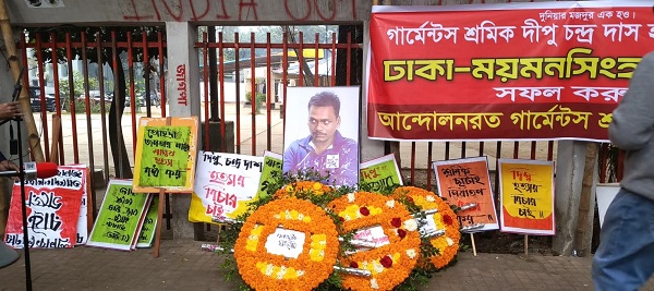 নিজস্ব প্রতিনিধিঃ ময়মনসিংহের ভালুকায় পাইওনিয়ার নীটওয়্যার (বিডি) লিঃ এর শ্রমিক দীপু চন্দ্র দাসের নৃশংস হত্যাকাণ্ডের প্রতিবাদে আজ, আন্দোলনরত গার্মেন্টস শ্রমিক সংগঠনসমূহের ঢাকা -ময়মনসিংহ রোড মার্চ কর্মসূচি স্থগিত ঘোষণা করা হয়েছে।