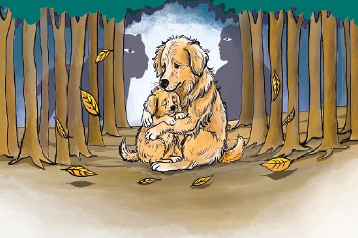 এসব দেখে মা কুকুরটা ভাবতে লাগল, ‘এ তো মানুষ নয়, মানুষের মতো দেখতে অন্য কোনো জন্তু হবে। মানুষ হলে আমার ছানাকে মারত না।’মা কুকুরটা তখন ছানার কষ্টে আরো চিন্তিত হয়ে পড়ল। ভয় পেয়ে ভাবল, ‘হায়, এখন যদি বাঘ আসে! তাহলে ছানাটাকে খেয়ে ফেলবে।’