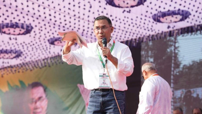 বক্তব্যের শেষপর্যায়ে তারেক রহমান বলেন, ‘করবো কাজ, গড়বো দেশ—সবার আগে বাংলাদেশ। দিল্লি নয়, পিন্ডি নয়, নয় অন্য কোনও দেশ, সবার আগে বাংলাদেশ।’