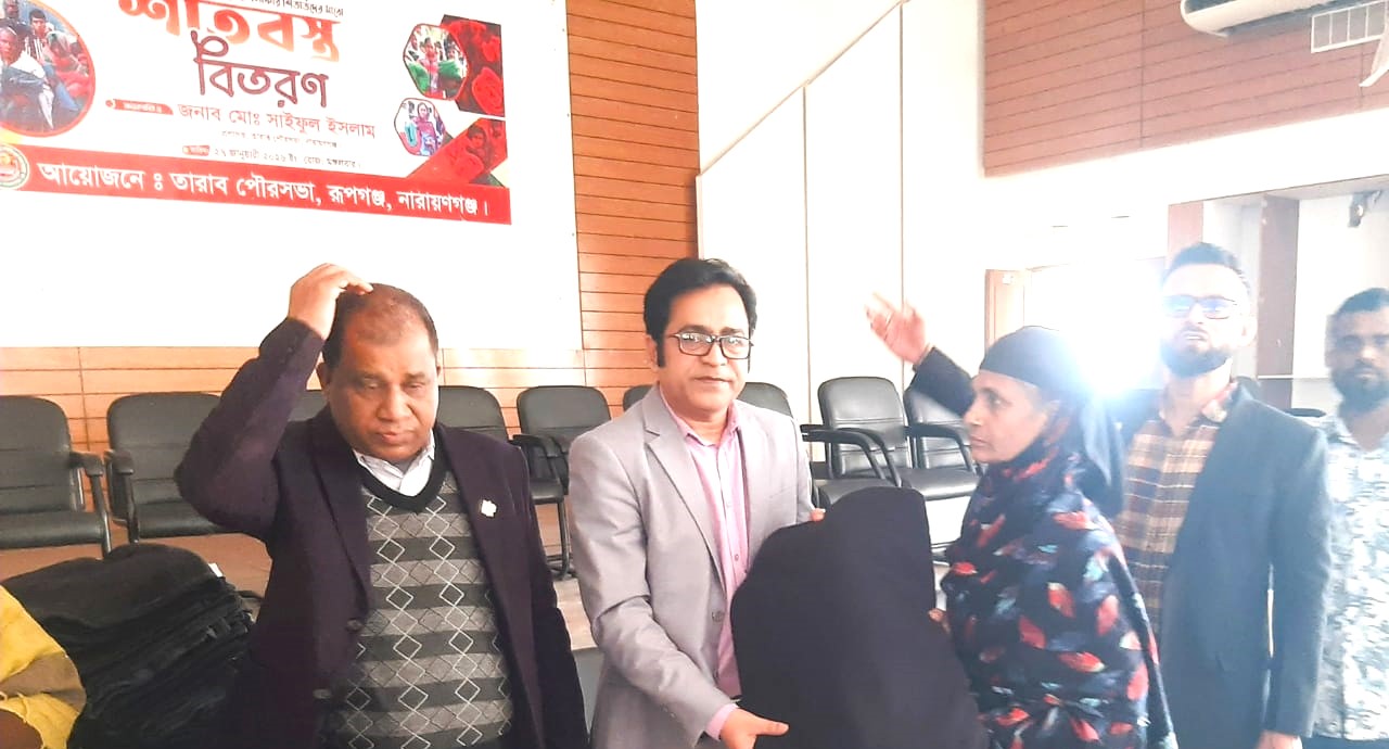 শাহ কামাল সবুজঃ আজ নারায়ণগঞ্জ তারাবো পৌরসভার উদ্যোগে রূপগঞ্জ এলাকার অসহায় শীতার্তদের মধ্যে শীতবস্ত্র বিতরণ করা হয়।