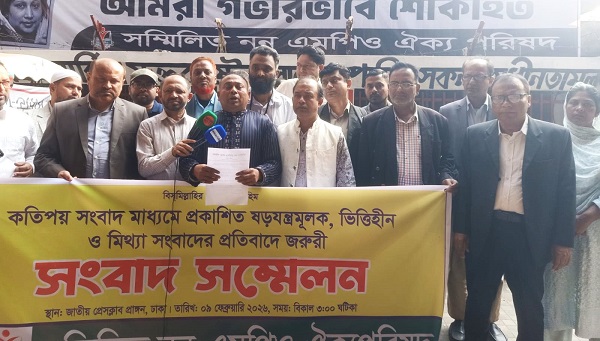 আমরা জানি, অত্যন্ত স্বচ্ছতার সাথে শিক্ষা মন্ত্রণালয় স্বয়ংক্রিয় সফটওয়্যারের মাধ্যমে নতুন শিক্ষা প্রতিষ্ঠান এমপিওভূক্তির কার্যক্রম পরিচালনা করছে। সেখানে কারও সাথে আর্থিক লেনেদেনের কোন সুযোগ নাই। একটি কুচক্রিমহল উদ্দেশ্য প্রনোদিত ভাবে এমপিও কার্যক্রমকে বাধাগ্রস্ত করার হীন উদ্দেশ্যে মিথ্যা ও বানোয়াট তথ্য সাংবাদিকদের কাছে সরবরাহ করে এমপিও বন্ধের অপচেষ্টা চালাচ্ছে। সম্মিলিত নন এমপিও ঐক্য পরিষদের সুনাম ক্ষুন্ন করা এবং এমপিও কার্যক্রমকে বাধাগ্রস্ত করার লক্ষ্যে পরিকল্পিত ভাবে অপপ্রচার চালানো হচ্ছে। আমরা এর তীব্র নিন্দা ও প্রতিবাদ জানাচ্ছি। সংবাদপত্রগুলোকে বুভুক্ষ নন এমপিও শিক্ষকদের পাশে থেকে বস্তুনিষ্ট সংবাদ পরিবেশ করে নির্বাচনের পূর্বেই এমপিওভুক্ত ঘোষনার পক্ষে রিপোর্ট করতে অনুরোধ করছি।