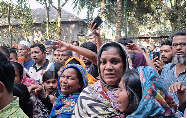 সুখিয়া বেগমের ছোট মেয়ে জিনিয়া আক্তার বিলাপ করতে করতে বলে, ‘মা আমগোরে কী কইরা গেলা, কারে মা বলে ডাকমু। আল্লাহ আমাদের কী হইয়া গেল। আমার মা-ভাইরে কারা খুন করল।’